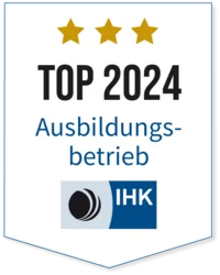 Das Zertifikat „Top-Ausbildungsbetrieb“ wird von der IHK vergeben. Es zeichnet uns aus, da wir Verantwortung für die Ausbildung junger Menschen und damit zugleich der frühzeitigen Entwicklung unseres Nachwuchses übernehmen.