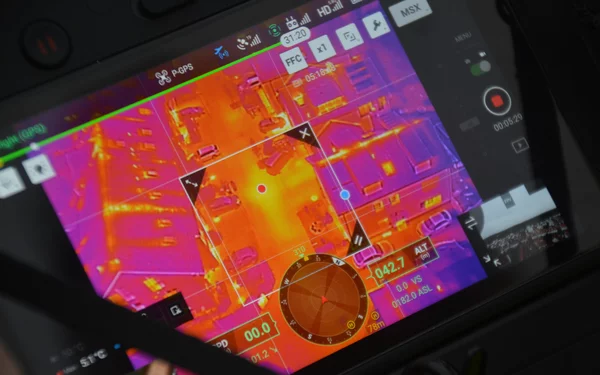 NEU-ISENBURG, 27.03.2023. Die Energienetze Offenbach GmbH (ENO) lassen am kommenden Donnerstag, 30. März 2023, ihr Fernwärmenetz im Neu-Isenburger Stadtteil Gravenbruch mit einer Drohne abfliegen. Die Drohne ist mit einer Spezialkamera bestückt und kann hochauflösende Thermografiebilder erzeugen. Mit Hilfe dieser Aufnahmen lässt sich rasch erkennen, wo kleinere Leckagen vorhanden sind oder die Isolation der Rohrleitung defekt ist. Somit lassen sich nach Angaben der ENO Reparaturen vorausschauend planen, bevor es zu Störungen kommt.